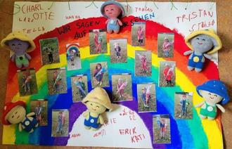 Unsere werdenden Schulkinder überraschten uns mit einem Abschiedsgeschenk: Ein großes Vogelhaus auf einem stabilen Holz-Stamm. Hier werden wir uns gern an unsere Kinder erinnern, denn auf dem Stamm haben sie sich mit Bildern und Namen verewigt. Vielen Dank ihr Lieben! Wir freuen uns, dass ihr bei uns ward und wünschen euch das Allerbeste für euren nächsten großen Schritt!