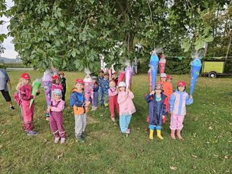 Am nächsten Tag feierten die Vorschulkinder mit ihren Familien und den anderen Kita-Kindern ein großes Fest. Es wurde gesungen, es gab Leckereien und fröhliche Bewegungsspiele und am Abend sogar Bratwürste.