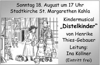 | 17:00 Uhr | Kahla: Kindermusical „Distelkinder“ |