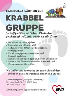 Gute Nachrichten für alle Eltern und ihre Kleinsten: Ab dem 21. August 2024 startet die beliebte Krabbelgruppe im AWO Integrativen Kindergarten "Tranquilla Trampeltreu" wieder!