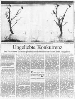 März 2002 - verheerende Auswirkungen der Kormoran- und Fischreiherpopulation nicht nur in Thüringen! Der intarsierte Leser wird sich erinnern, ein Kormoran benötigt täglich 3-5 Kilo Fisch zum Fressen, ungezählte nicht erjagte Fische Verenden in Folge Verletzungen, bringen Erkrankungen des Fischbestandes ins Gewässer.
