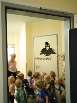 Dann ist der große Tag auch schon gekommen. Nach ihrem letzten Frühstück im alten Gruppenzimmer treffen sich die Kinder in einem Morgenkreis, in dem sie der Geschichte von Tranquilla Trampeltreu (Michael Ende) lauschen. In diesem Buch begegnet Tranquilla während ihrer Reise vielen Tieren, jedem ist ein Raum in unserer Einrichtung gewidmet.