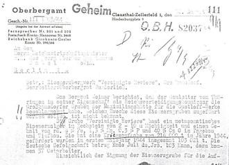 „Aus der gestrigen Besichtigung der Großkamsdorfer Gruben hat sich in mir trotz der anscheinend bestehenden großen Unzulänglichkeiten die Überzeugung gefestigt, dass sowohl der „Hermannsschacht“ wie auch das neuere System sehr wohl für eine kriegswichtige Fertigung in Frage kommen.