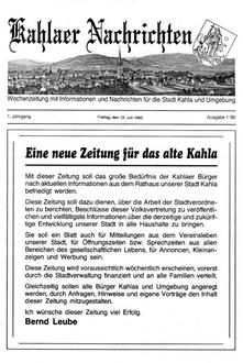 Im Juli vor 35 Jahren erschien die erste Ausgabe der „Kahlaer Nachrichten“. Aktuelle Informationen aus der Stadtverwaltung, den Vereinen, Schulen und Kindergärten sowie Veranstaltungshinweise fanden und finden stets interessierte Leser.