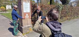 Anbringen Plakat Kriegsgräberstätte Friedhof Kahla