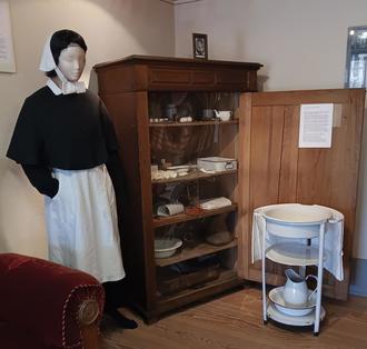 Nach umfangreicher Restaurierung und Archivrecherchen, vor allem im Diakonissenmutterhaus in Eisenach, kann nun eine weitere Kahlaer Geschichte präsentiert werden. Vielen sind die zwei Diakonissen Else und Magdalena bestimmt noch in Erinnerung. Sie wurden zu Kahlaer Ehrenbürgerinnen und gehörten zum Kahlaer Stadtbild mit ihrer freundlichen, hilfsbereiten Tätigkeit. In diesen Kontext gehört auch der „Margarethenschrank“ von 1905, das Jahr, als die ersten Diakonissen nach Kahla kamen bis die Letzte, Schwester Magdalena 2005 verstarb. Dieser Schrank, gebaut für medizinische Artikel zur Krankenpflege, hat seine ganz eigene Geschichte, die es zu entdecken lohnt. Er war eine Bestellung, die aus Norddeutschland nach Kahla kam.