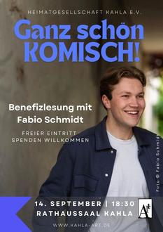 Die Heimatgesellschaft Kahla e.V. lädt Sie herzlich zu einer Lesung der besonderen Art mit Texten von Loriot, Heinz Ehrhardt und anderen Komikern ein, die zugunsten des Vereins „Mut zum Leben mit und nach Krebs e.V. in Kahla und Umgebung“ stattfindet. Erleben Sie einen humorvollen Abend mit vielen zeitlosen Werken großartiger Komiker, während wir gemeinsam Spenden für einen guten Zweck sammeln.