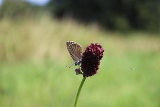 Diese Blume ist nicht nur schön anzusehen, sondern auch unverzichtbar für einen seltenen Schmetterling, den Dunklen Wiesenknopfameisenbläuling. Dieser legt seine Eier an den Blüten ab; die geschlüpften Raupen werden anschließend von Ameisen in deren Nester getragen, wo sie weiterleben können. Damit sich dieser seltene Schmetterling entwickeln kann, darf der Große Wiesenknopf bis mindestens Mitte September nicht entfernt werden.