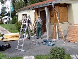 Das Vereinsheim erhält eine neue Eingangstür, nach der Sachbeschädigung durch den Einbruch. Im Bild Anton Heckel der Bauglaserei in Kahla. Hier erkennbar das sich an der Fassade des Vereinsheimes bereits einiges tat. Hierzu in der kommenden Ausgabe mehr.