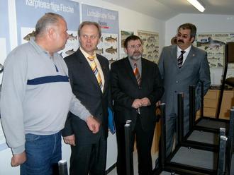 Einweihung des Jugendraumes, von links nach rechts: Sportfreund Udo Gudd als Vereinsvorsitzender, der Landrat des SHK Andreas Heller, der Abgeordnete der CDU im Thüringer Landtag und Ehrenmitglied des Kahlaer Sportanglervereines Wolfgang Fiedler, der Bürgermeister von Stadtroda (?)