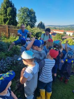 Hier wachsen und gedeihen Kürbisse, Bohnen, Tomaten, Kartoffeln, Kräuter u.v.m. und in seiner Begleitung konnten sie die Früchte des Gartens mit allen Sinnen wahrnehmen.
