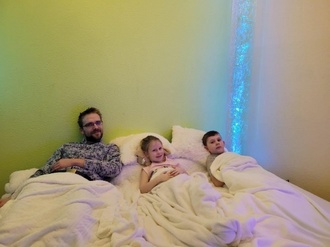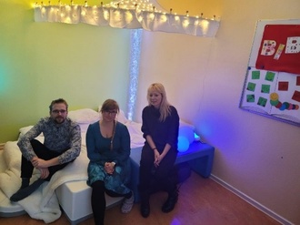 Selbstverständlich durfte Herr Stöcker bei der offiziellen Übergabe das Snoezelen bei uns testen und sich vom Wert eines solchen Angebotes für die Kinder überzeugen.