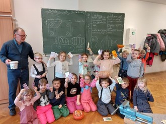 Am 16.01.2024 folgten die Löwenkinder der Einladung von Herrn Schmidt in die Regelschule Kahla. Bereits im September des vergangenen Jahres waren sie in seinem Kleingarten zu Gast und ernteten Kürbisse, Zucchinis und vieles mehr. Dieses Mal schlachteten sie Früchte und fertigten Saatguttüten an. Auch das Bemalen der Saatkästen stieß auf große Begeisterung bei den Kindern und das Kosten von selbstgemachten Leckereien aus den Gartenfrüchten war für die Kinder der krönende Höhepunkt. Nun freuen wir uns schon darauf die gewonnen Samen im Frühjahr bei uns im Kindergarten auszusäen.