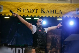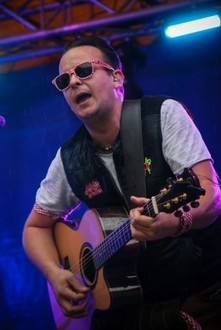 Zahlreiche Besucher fieberten dem Auftritt von Tobi als Andreas Gabalier Double entgegen und sangen trotz Regen unter ihren Schirmen bekannte Hits.