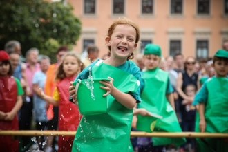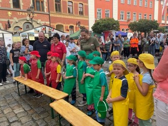 In einem spannenden Wettkampf beim „Kleinen Wasserlauf“ zeigten die Kahlaer Kindergärten, wer die schnellsten Läufer und besten Wasserschöpfer in seinem Team hat. Am Ende überreichte unser Bürgermeister Herr Schönfeld dem Team der Kindertagesstätte „Geschwister Scholl“ - Diako Thüringen gem. GmbH die Siegertrophäe. Alle Kinder wurden aber zu Siegern erklärt und erhielten eine Goldmedaille. Zur Freude aller Kinder, konnte jeder Teilnehmer ein Präsent mit nach Hause nehmen. Wir möchten uns auf diesem Weg bei der Volksbank eG Gera Jena Rudolstadt, der Porzellanmanufaktur Kahla/Thüringen GmbH und der Heimatgesellschaft Kahla e.V. für die Preise bedanken.