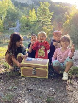 Auch unsere Kleinsten fanden mit großer Begeisterung einen Schatz. Dieser war in unserer Arche Noah auf unserem bewegungsanregenden Außengelände versteckt. Ein wunderschöner Vormittag war das für alle!
