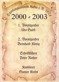 Dank dem Sportfreund Peter Bleul, Inhaber seinerzeit der Druckerei in der Bachstraße in Kahla, wurden entsprechende neue Urkunden hergestellt um somit alle Vorstandsbereiche als Ahnentafel im Vereinsheim aufzuzeigen. Dies kostenfrei Dank Sportfreund Peter Bleul, welcher den Standpunkt teilte.