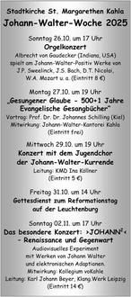 | 17:00 Uhr | Kahla: Orgelkonzert zur Eröffnung der Johann-Walter-Woche |