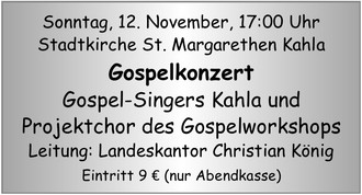 | 17:00 Uhr | Kahla: Gospelkonzert |