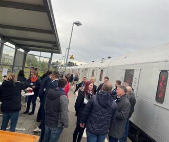 Am 24. Oktober 2023 kam der Revolution Train auf Initiative der Stadtverwaltung Kahla und der VG „Südliches Saaletal“ auf den Bahnhof in Göschwitz. Die Schülerinnen und Schüler der Jahrgangsklassen 8-10 aus Kahla und Milda waren eingeladen. Im Rahmen des Unterrichts nutzen die Schulen das bisher einzigartige Projekt zur interaktiven Suchtprävention, welches die bisherigen Herangehensweisen und Methoden ergänzt.