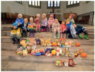 Deshalb brachten wir die Erntegaben in unsere Kirche und dankten Gott, gemeinsam mit der Pfarrerin Frau Wedding, mit einem Lied.