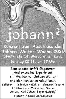 | 17:00 Uhr | Kahla: Johann-Walter-Woche - Konzert Johann2 |