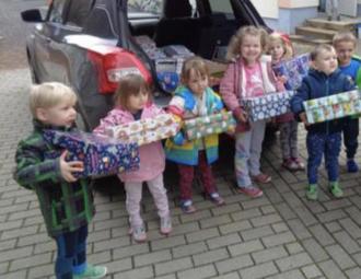 Daraufhin brachten viele Kinder ein Päckchen mit, welches sie gemeinsam mit ihren Eltern befüllt und gestaltet haben. Die Päckchen wurden am 21.11.2023 von Herrn Härdrich aus der Kita abgeholt und zur Sammelstelle gebracht.