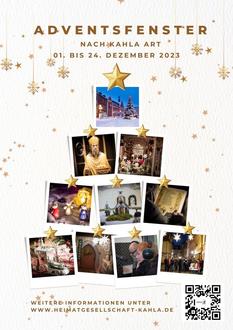 Kahla. Ab dem 1. Dezember verwandelt sich Kahla zum bereits zweiten Mal in einen „begehbaren“ Adventskalender. Bis zum Heiligen Abend öffnet die Heimatgesellschaft Kahla täglich ein „Adventsfenster“, hinter dem Vereine, Unternehmen und Privatpersonen die Menschen unserer Stadt bei - mal kleineren, mal größeren - öffentlichen Veranstaltungen zusammenführen wollen. Als „abwechslungsreich und vielseitig“ beschreibt Susann Gauer, die Vorsitzende der Heimatgesellschaft, das Programm in diesem Jahr. Sie lädt herzlich ein: „Kommen Sie vorbei und genießen Sie unbeschwerliche Stunden in bester Gesellschaft.“ Die ersten vierzehn Veranstaltungen der Reihe im Überblick: