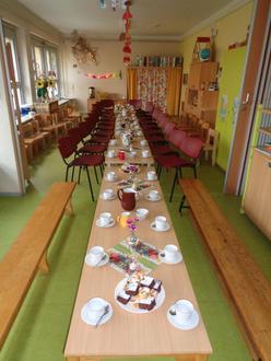 Im Anschluss gab es ein gemeinsames Kaffeetrinken mit leckerem Kuchen, den die Kinder am Vortag fleißig zusammen mit ihren Erzieherinnen selbst gebacken hatten. Die Stimmung war sehr gelassen und fröhlich.