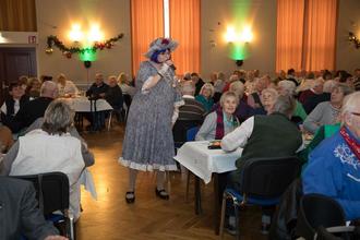 Nach dem traditionellen weihnachtlichen Kaffeetrinken kam „Herta von der Bergbahn“ zur lustigen Unterhaltung. Mit Schunkelliedern, kleinen nützlichen Diättipps und kleinen Geschichten unterhielt sie die Anwesenden.