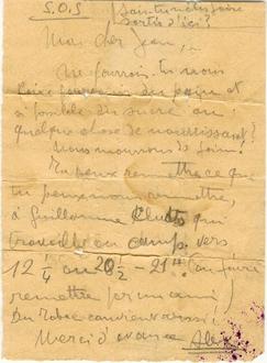 Zettel eines belgischen Zwangsarbeiters aus Lager 0, den er heimlich einen Kameraden aus Lager E zusteckte. Er beschreibt den Hunger und die Stimmung im Lager 0.