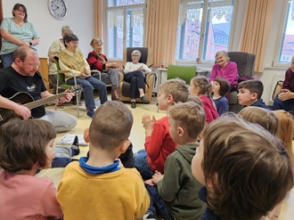 Nach langer Pause lebt unsere Kooperation mit der Tagespflege der Diakonie in Kahla nun endlich wieder auf. Die Kinder besuchten die Senioren, sangen, tanzten und aßen gemeinsam mit ihnen. Die Freude war groß! Alle stellten sich gegenseitig vor und alle hatten großen Spaß und freuen sich schon jetzt auf den nächsten Besuch.