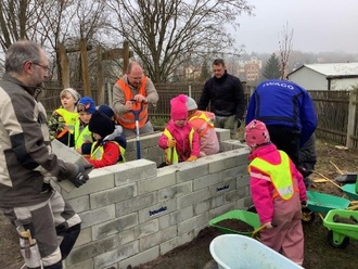 Bereits am Mittag des 1.3. war es geschafft - das Hochbeet stand, war gefüllt und pflanzbereit. Und unser Kita-Team? Das ist vollkommen überwältigt vom enormen Engagement und der Tatenkraft unserer Familien und dem fantastischen Ergebnis! Nun sehnen wir den Frühling herbei, denn dann starten wir mit unseren Kindern die Pflanzaktionen.