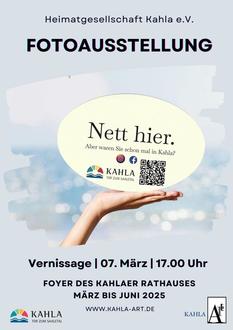 Entdecken Sie faszinierende Urlaubsregionen rund um die Welt durch die Linse talentierter Fotografen. Die Ausstellung präsentiert eine Auswahl der schönsten Ausflugs- und Urlaubsmotive aus dem gleichnamigen Fotowettbewerb. Gezeigt wird die im Bild wiederkehrende humorvolle Aufforderung, die Stadt Kahla zu besuchen und ihre Reize zu entdecken. Die Ausstellung kann von März bis Juni 2025 im Foyer des Rathauses der Stadt Kahla zu den Öffnungszeiten der Stadtverwaltung Kahla, aber auch nach individueller Vereinbarung besichtigt werden. Der Eintritt ist kostenfrei.