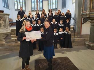 „Was für ein toller Betrag“, freuten sich Ina Köllner und der Kinder- und Jugendkirchenchor. Als Dank gab es direkt eine kleine Gesangseinlage.
