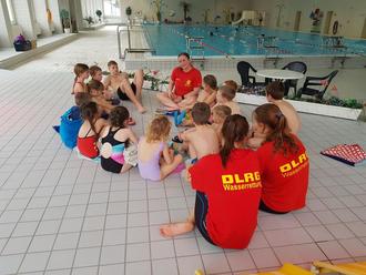 In den Schwimmpausen legte das Team der DLRG den Fokus auf Trockenübungen zur Verbesserung der Schwimmtechnik und die Verhaltensgrundsätze am und im Wasser. Die Frühschwimmer verinnerlichten diese schnell und konnten letztlich mindestens sieben der insgesamt vierzehn wichtigsten Baderegeln bei spontaner Abfrage sicher wiedergeben.
