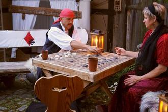 Der Spielmann und sein holdes Weib beim römischen Spiel ludus latrunculorum