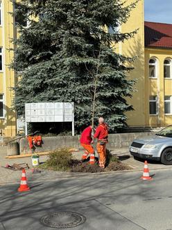 Passend zur besten Pflanzzeit habe die Mitarbeiter des Bauhofes der Stadt Kahla neue Bäume gepflanzt. So wurden am Walkteich ein neuer Kugelahorn, in der Bahnhofstraße Amberbäume und in der Schulstraße Linden neu gepflanzt. Unterstützung dazu erhielten wir von der Firma COLANDIS GmbH, die der Stadt Kahla 10 Bäume gespendet hat. Wir bedanken uns herzlich bei den Geschäftsführern, Frau Ina Henze-Ludwig und Joachim Ludwig, für die großzügige Unterstützung.