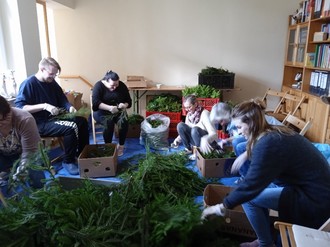 In gemeinsamer Teamarbeit und mit der Unterstützung vieler ehrenamtlicher Helfer haben wir die Osterkrone in Windeseile gebunden und am 31. März mit Hilfe der Mitarbeiter des Bauhofes auf den Marktbrunnen aufgesetzt. Vielen Dank!