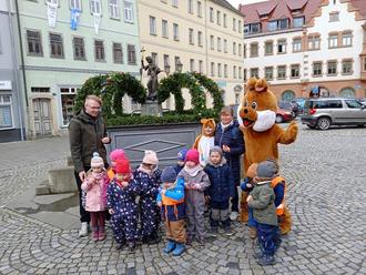 Am 4. April startete unser Osterfest für alle Kinder mit einem leckeren Osterbuffet, welches von den lieben Eltern unterstützt wurde. Dafür recht vielen Dank. Musik erklang im ganzen Haus und frisch gestärkt ging es zum Osterwassertrinken am Marktbrunnen. Osterhase samt Helferlein warteten schon auf die Kinder. „Pssst ganz leise, denn das Wasser bringt uns Glück und Gesundheit für das ganze Jahr. Danke Fam. Seibel aus dem Purzelbude e.V..