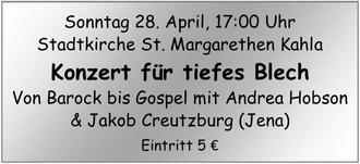 | 17:00 Uhr | Kahla: „Konzert für tiefes Blech“ |