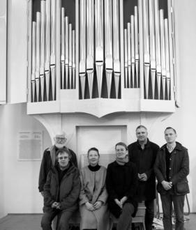 Beim Treffen am 28.3.: (v.l.) Frank Hellwig, Maren Hellwig, Ina Köllner, Elisabeth Wedding, Stephan Tiesler und Richard Machnik vor dem Johann-Walter-Positiv in der Stadtkirche Kahla