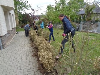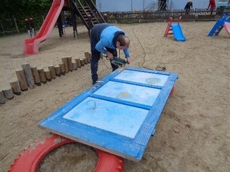 Das Klettergerüst und Reck wurden gestrichen, die Beete wurden von Unkraut befreit, der Sandkasten wurde wieder mit Sand befüllt sowie die Zäune repariert. Am Eingang wurden die Büsche entfernt und die Bäume gestutzt.