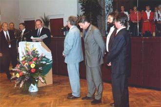 Mit der "Ehrennadel des DAV e.V." in Gold wurden durch das Präsidium des DAV e. V. geehrt: der Staatssekretär des Thüringer Ministeriums für Wirtschaft und Infrastruktur, Herr Roland Richwien, der Landrat des Saale- Holzland- Kreises, Herr Jürgen Mascher, der Bürgermeister der Stadt Kahla, Herr Bernd Leube, der Vorsitzende der Verwaltungsgemeinschaft "Südliches Saaletal", Herr Rainer Franke, sowie der Amtsleiter des Umweltamtes des "Saale- Holzland- Kreises", Herr Wolfgang Jeschonek.