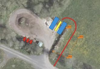 | • | Eine neu zu schaffenden Überfahrt, sodass man beim Abladen nach hinten wegfahren kann (über den Graben zum Weg, s. Skizze) |
