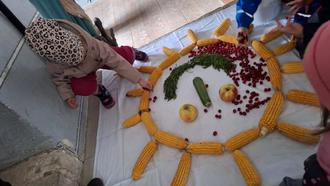 Schon eine Woche später stand das nächste Event vor der Tür: Das Erntedankfest in Kaltenlengsfeld. Es ist zu einer lieben Tradition geworden, dass die Umpfenzwerge dazu in der Kirche ein Mandala legen. Dazu sammelten die Kinder auf ihren vielen Wanderungen zum Zauberwäldchen, zum Hausberg Umpfen oder zur „Stätte“ viele verschiedene Herbstfrüchte und Naturmaterialien. Zusätzlich wurden von zu Hause noch liebevoll gepackte Herbstkörbchen mitgebracht.