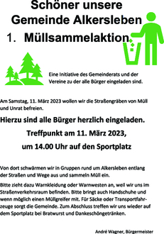 Zudem wurde über eine Müllsammelaktion informiert, welche am Samstag, den 11. März 2023 stattfinden soll.