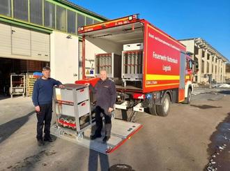 Um im Einsatzfall Löschwasser über längere Strecken fördern zu können, wurde an die Feuerwehr Rottenbach das Modul Wasserförderung übergeben.