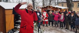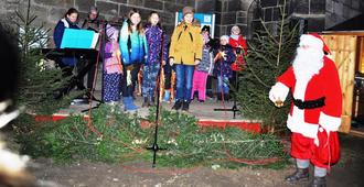 Dann übernahm die Bergbahnkönigin Sylvia das Mikrophon und stimmte das Publikum mit guter Laune auf die Weihnachtszeit ein. Sängerinnen des ehemaligen Gemischten Chores Königsee ließen sich anstecken und sangen kräftig mit.
