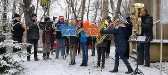 Vor der Kirche sorgten dann die Jagdhornbläser vom Singer Berg mit ihren Hörnern für eine weihnachtliche Stimmung.